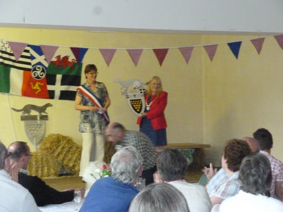 Enfin, le samedi 19 mai 2012 vers 20H au Rugby Football Club Lions de Hayle, Mme Marie-Frédérique BLOT-LE POTIER au nom de la municipalité de PORDIC offre à Mme Jayne NINNES Mayor de Hayle une plaque commémorative (reprenant la forme de la girouette) scellant le 15eme anniversaire du jumelage entre les deux cités celtiques ! Après les discours officiels, nous avons pu écouter une chorale, déguster un excellent Hog Roast (Cochon grillé) et finir cette dernière soirée à Hayle par des danses... En effet, le lendemain matin vers 5H l'autocar nous attendait pour rejoindre Plymouth et entamer notre traversée de retour vers Roscoff ! L'arrivée à PORDIC s'est faite sous la pluie vers 16H30 le dimanche 20 mai 2012.