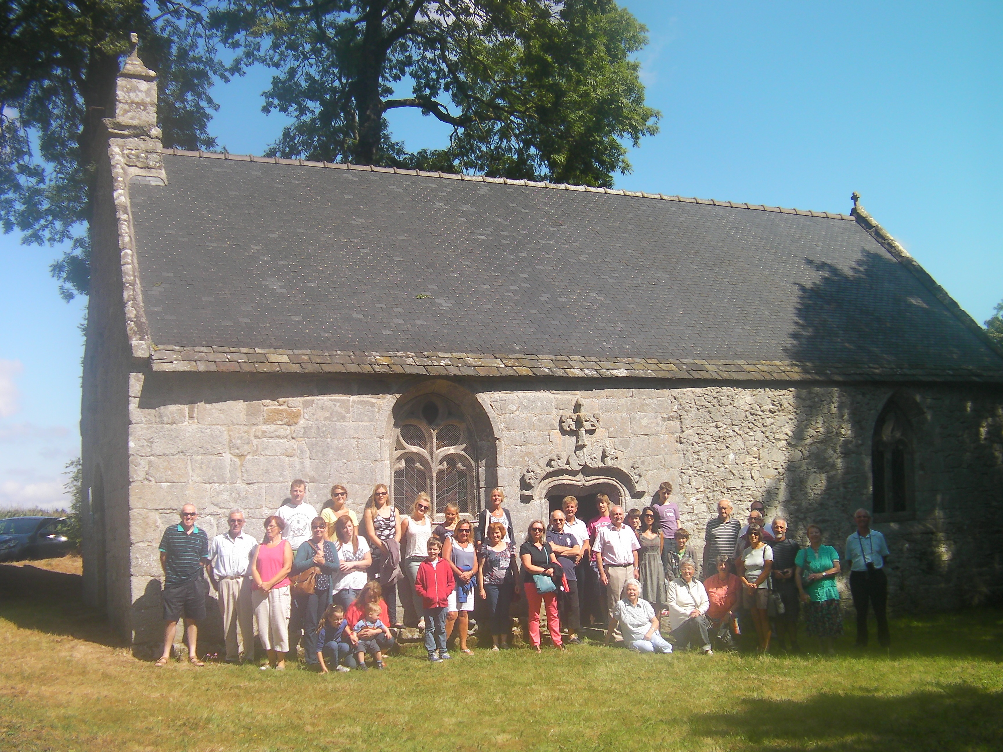 La visite du musée de la Résistance à l'Etang Neuf en Saint-Connan, lundi 26 août : une partie du groupe devant la chapelle ND du Logou, qui servait de lieu de cache d'armes pour le maquis de Coat Malouen.