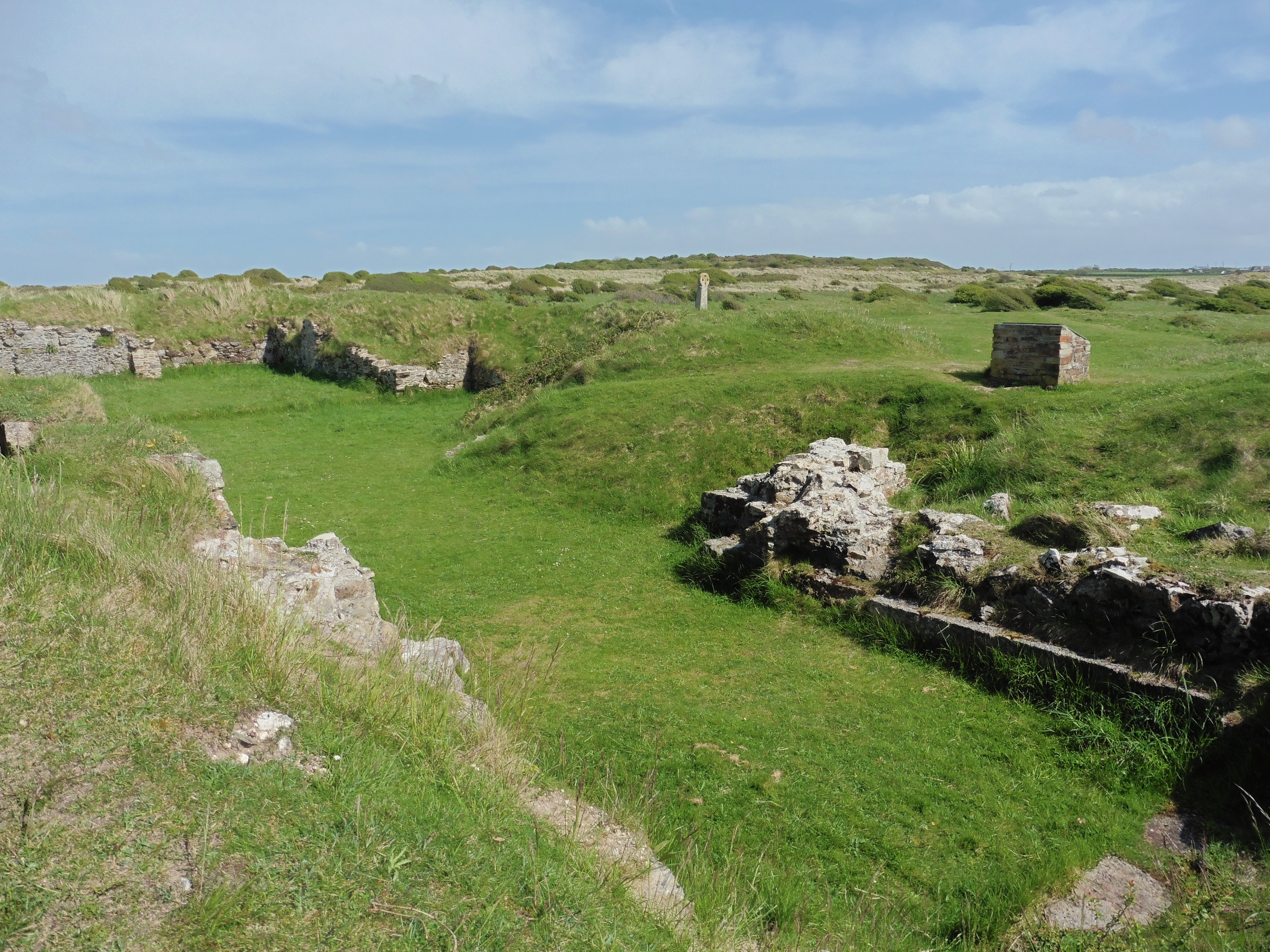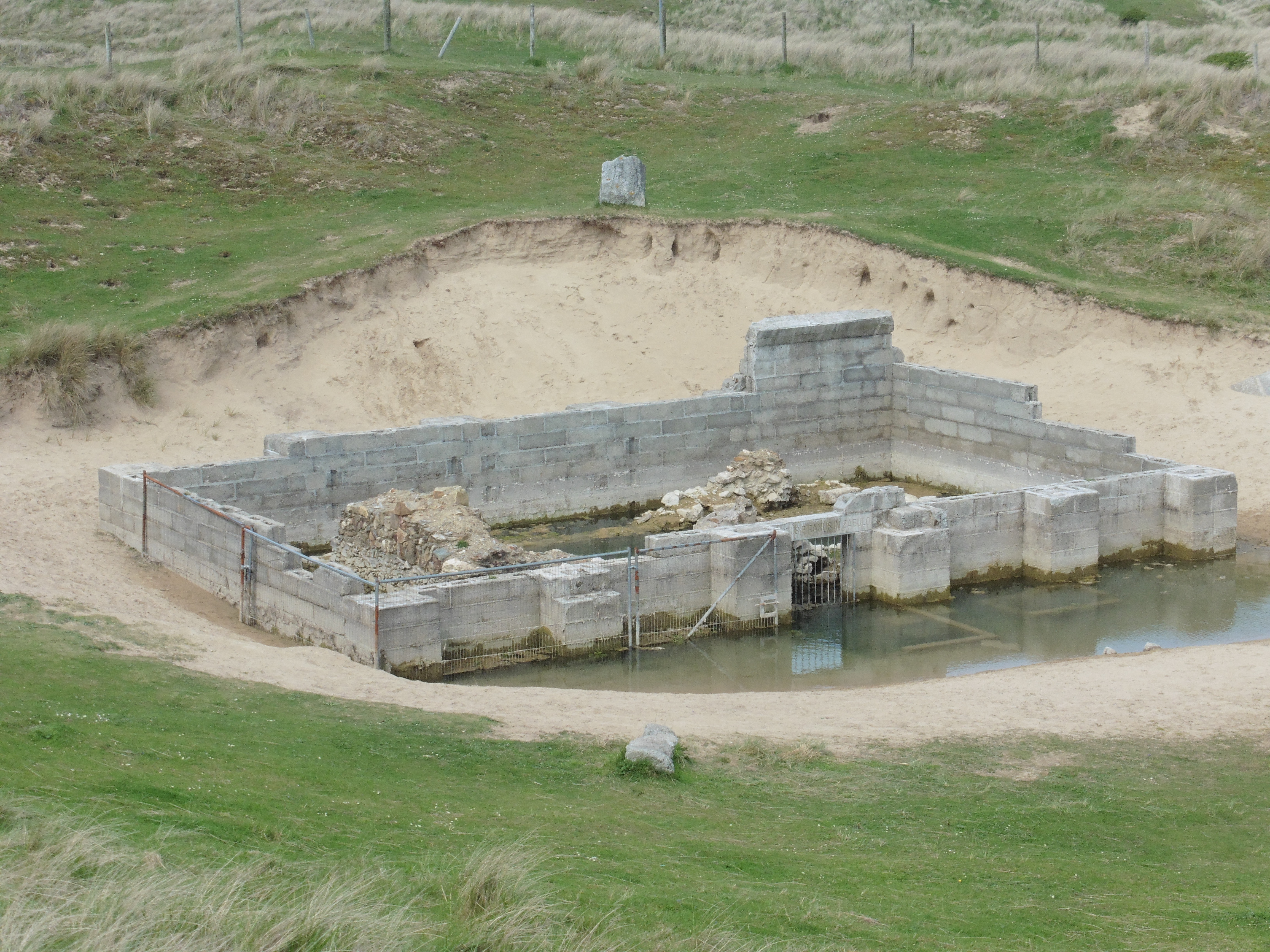 Les ruines de l'église, érigée près de la plage où, selon la légende, le Saint s'échoua après avoir été jeté à la mer en Irlande lesté d' une meule autour du cou.