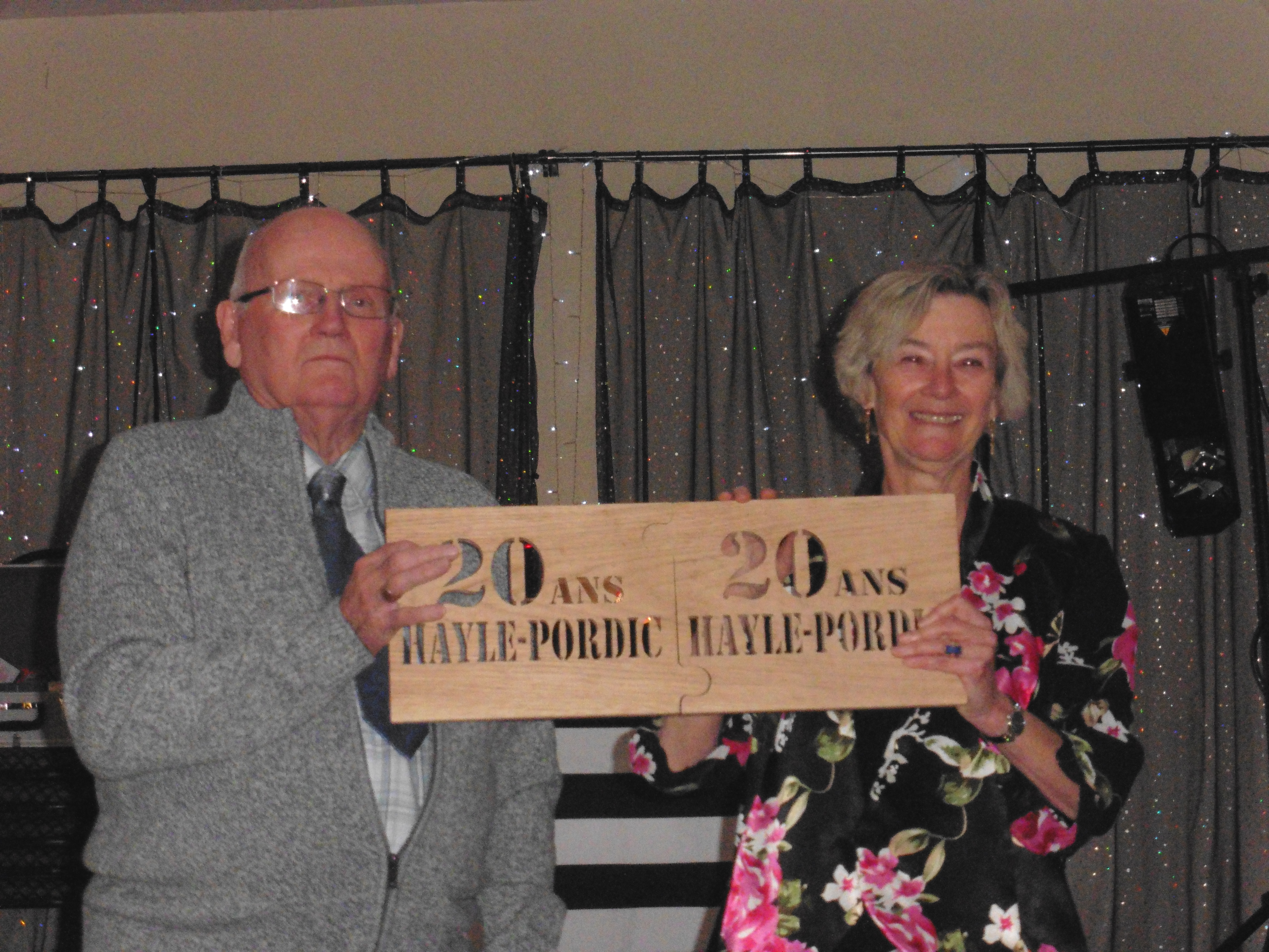 Vendredi 11 mai : soirée au Rugby Club. Les 2 pièces du puzzle symbolisant le jumelage sont réunies par le Président du Comité de Jumelage de Hayle et la Vice-Présidente du Comité de Jumelage de Pordic.