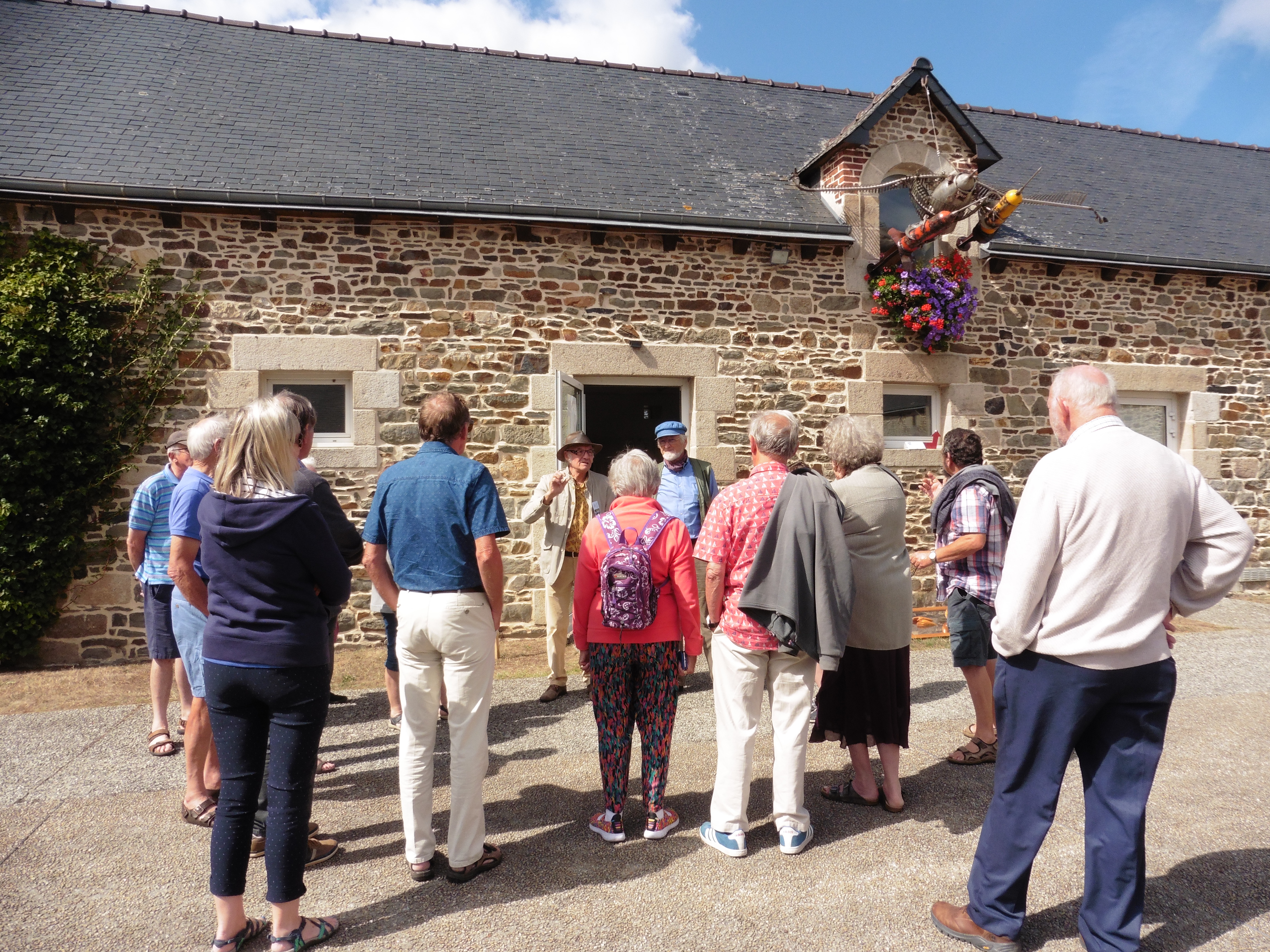 Sous un beau soleil estival, le Général François BUDET a accueilli à l 'Etang Neuf de St CONNAN les 40 anglais de HAYLE accompagnés de leur hôtes français de PORDIC pour une visite commentée du musée de la résistance.
