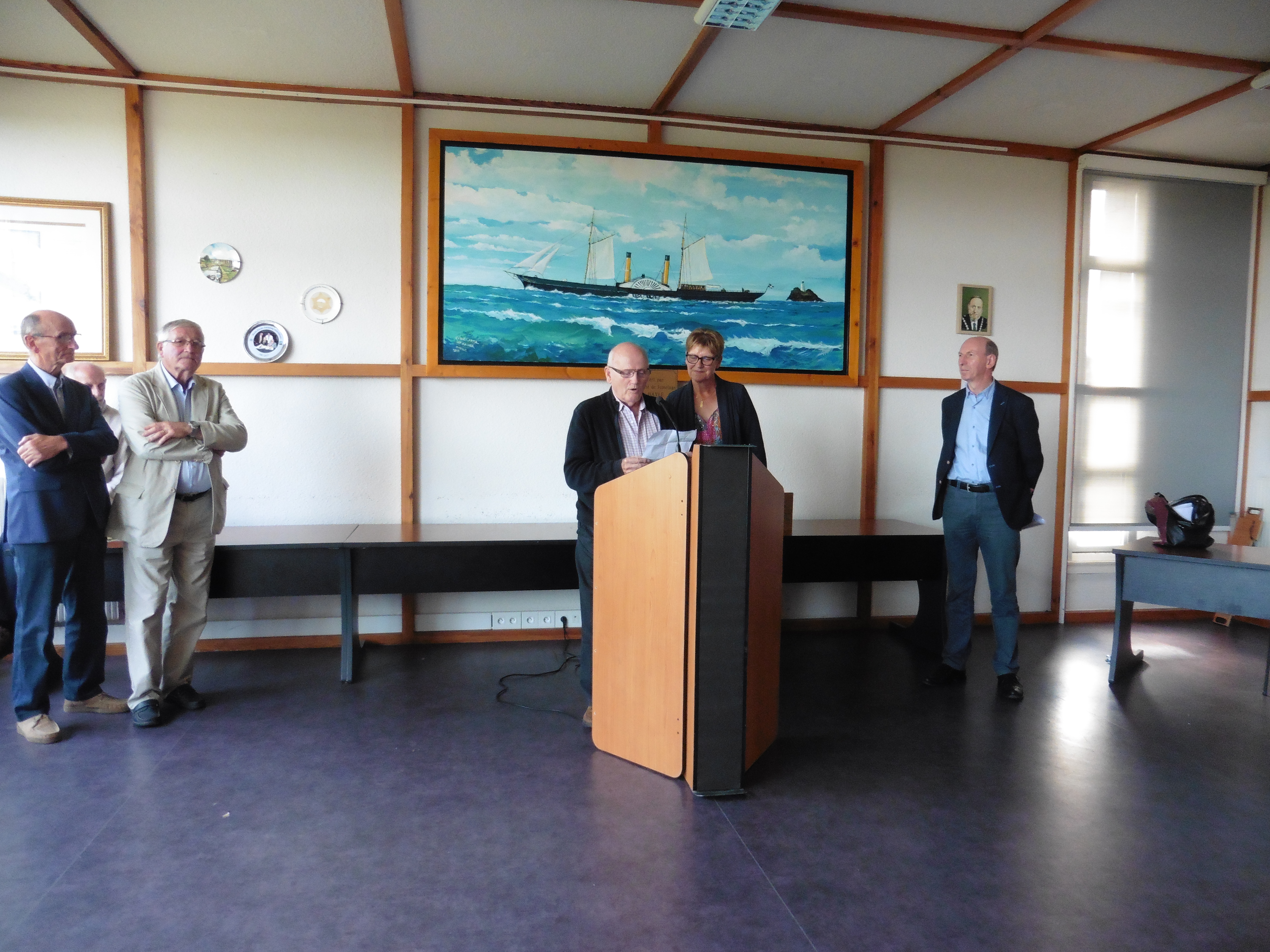 L'assistance écoute les discours officiels (Maire de Hayle nouvellement élu et Présidents des 2 Comités)